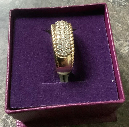 Sonia Bitton 9ct gold diamond designer 3 row rope edge ring size N1/2-O 7.77g