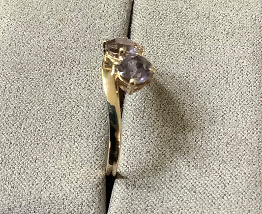 Stunning 9ct purple gemstone iolite? Toi et Moi ring size P yellow gold QVC