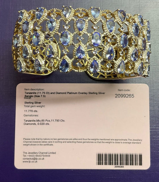 Tanzanite & Diamond gold & platinum overlay 925 sterling silver bangle with certificate (damaged)