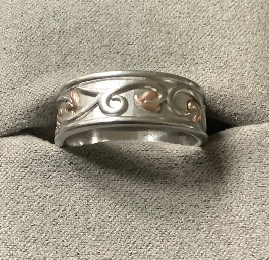 Unisex Clogau Royal Oak wide inlay band ring size R silver and rose gold 6.78g