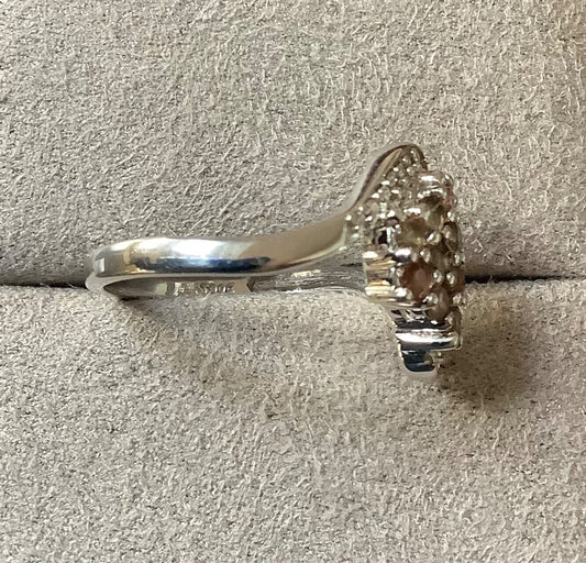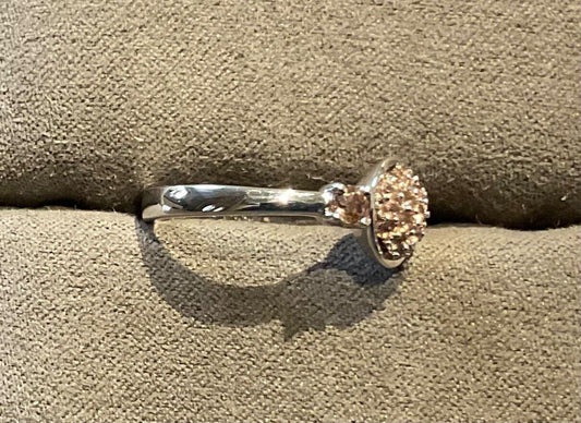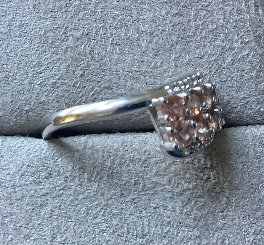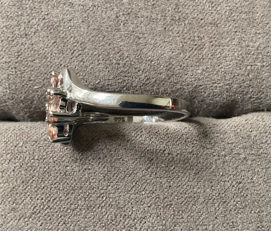 925 clear and peach gemstone cluster halo ring size R1/2 TGGC STERLING SILVER