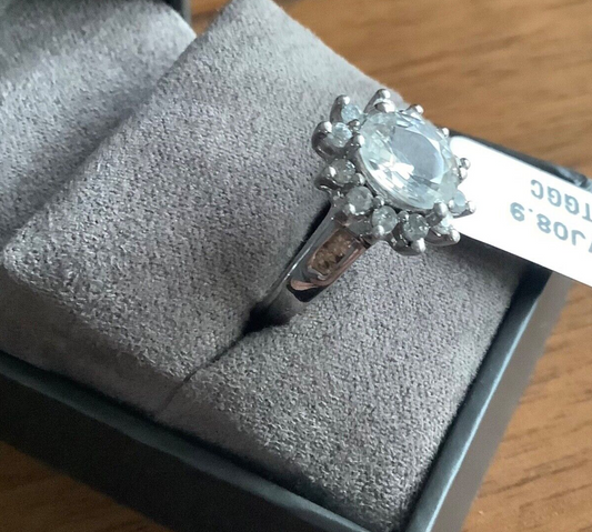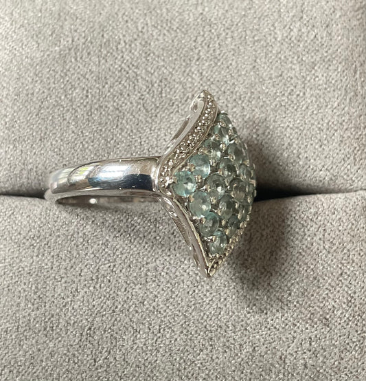 925 Blue gemstone Aquamarine? Topaz cluster sterling silver ring size L TGGC
