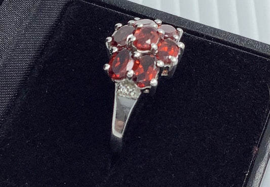 925 garnet and diamond silver cluster ring size R1/2 TGGC