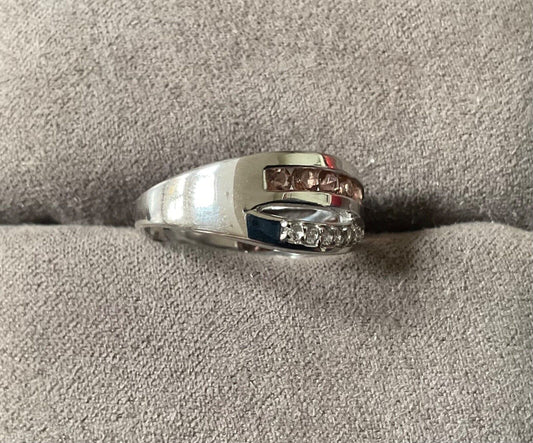 925 Andalusite and zircon channel set cross over ring size N1/2 sterling silver