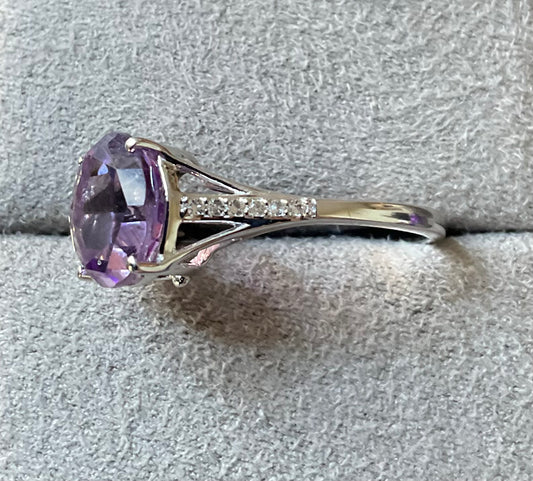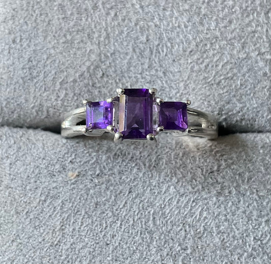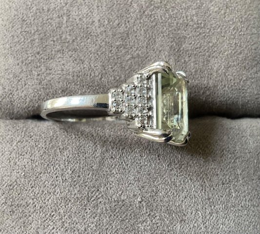 925 Green Amethyst & Zircon emerald cut & stepped shoulders ring R-R1/2 silver
