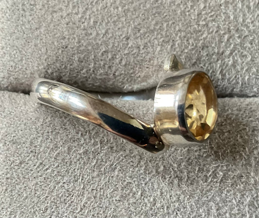 925 Citrine 9mm round cut solitaire bypass ring size P1/2
