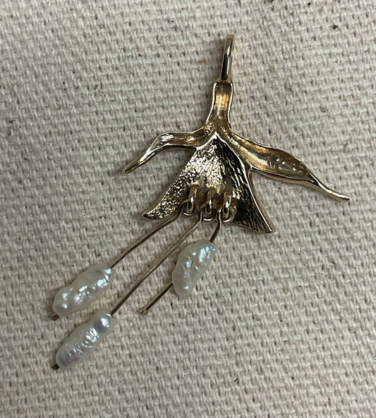 Vintage 9ct Baroque Pearl and Diamond pendant necklace 18” yellow gold