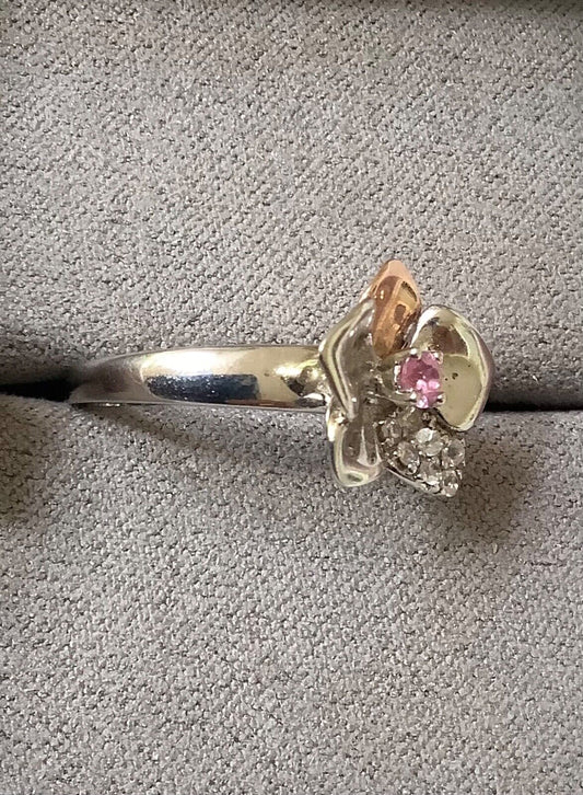 Clogau pink sapphire orchid ring size M silver and rose gold