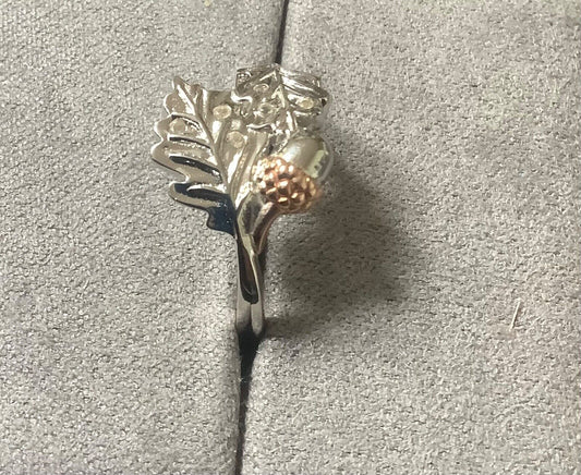Clogau Royal Oak leaf ring size P silver and rose gold RRP £169