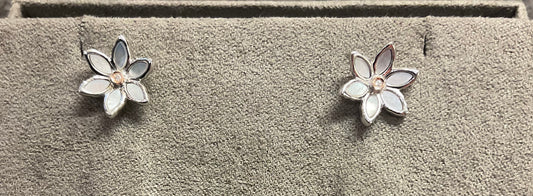 Clogau Lady Snowdon Mother of Pearl and Diamond flower stud earrings in silver and rose gold