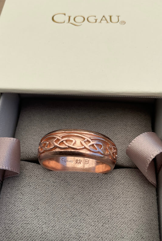 Clogau 9ct Rose Gold Wide Annwyl 8mm wedding band ring size T1/2 Unisex ladies Gentlemen