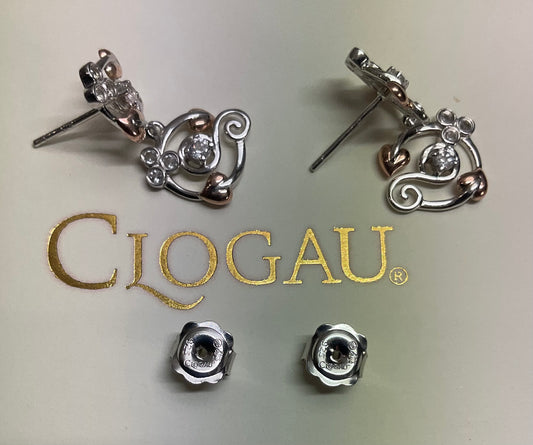 Clogau Paw Prints on my Heart stud earrings in silver and rose gold
