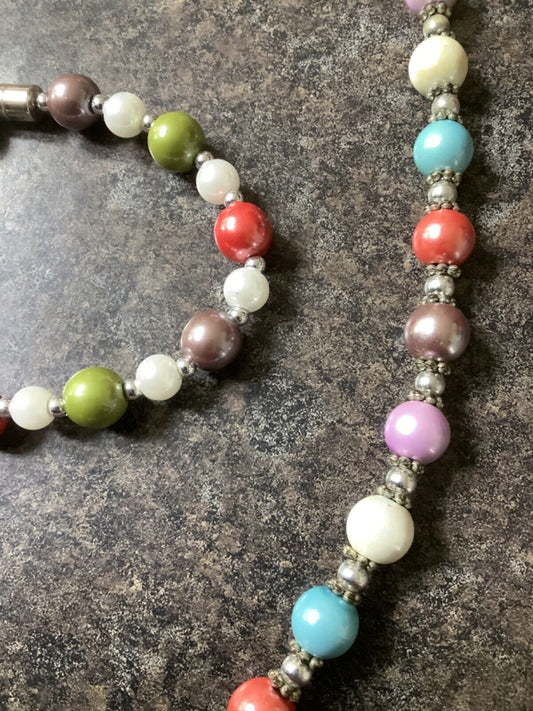 magnetic multicoloured bead silver tone necklace and bracelet set