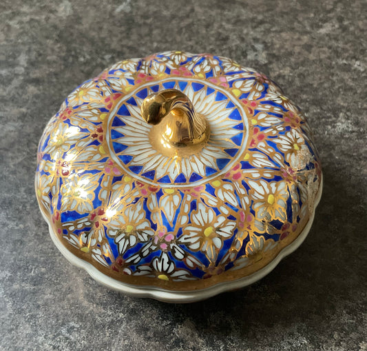 Vintage Thai Benjarong Pumpkin shape lidded trinket pot handmade ceramic hand painted porcelain decorative storage dish
