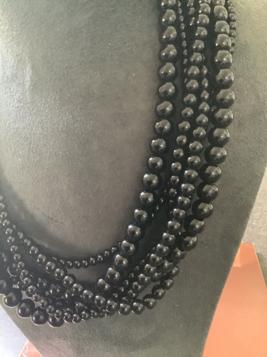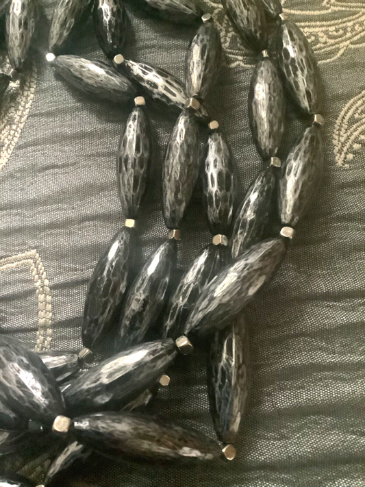 Silver and black multi strand chunky lozenge barrel bead necklace 18-21”