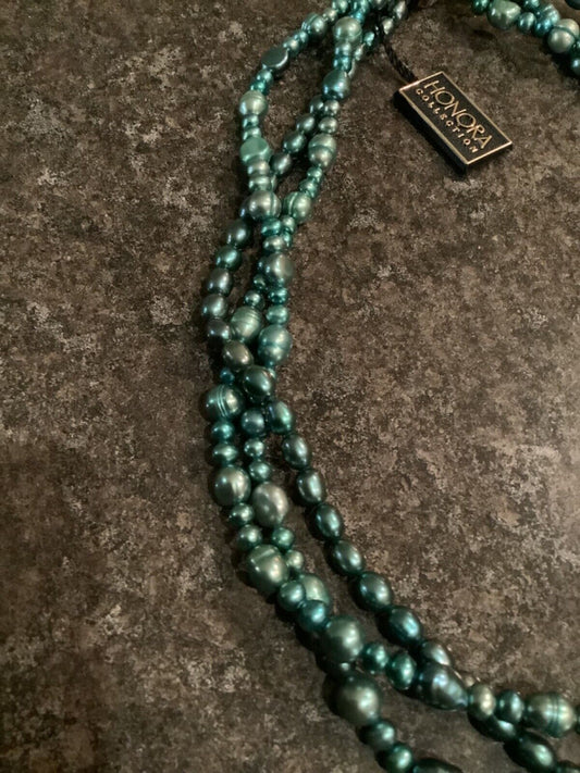 Honora Pearls 3 row cultured pearl necklace with silver clasp 17.5" green