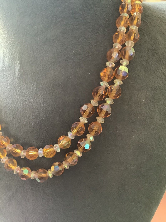 Vintage amber colour & clear faceted bead vintage aurora borealis double row necklace