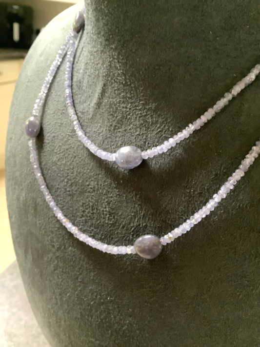 Long Tanzanite bead necklace with 10ct yellow gold clasp 31.5” (80cm)