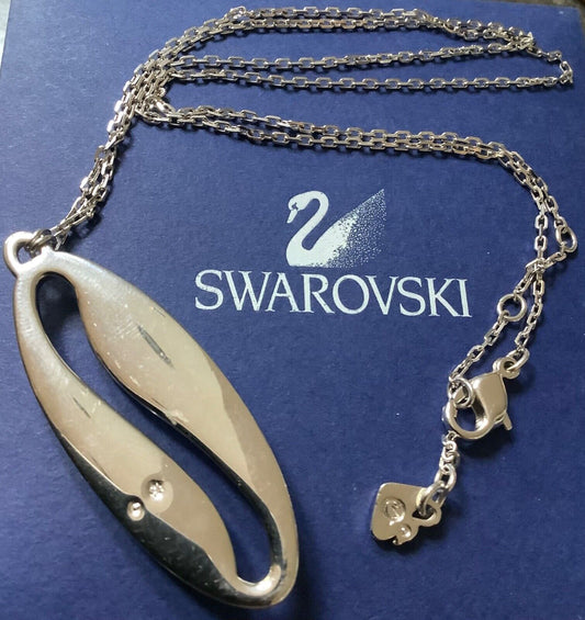 Swarovski ‘Harmony’ clear crystal large oval silver tone pendant necklace