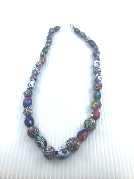venetian millefiori glass bead necklace 17" 63g Read description!