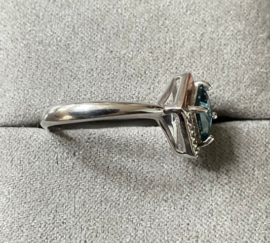 Clogau Kensington Love Story London Blue topaz ring size P in silver and rose gold