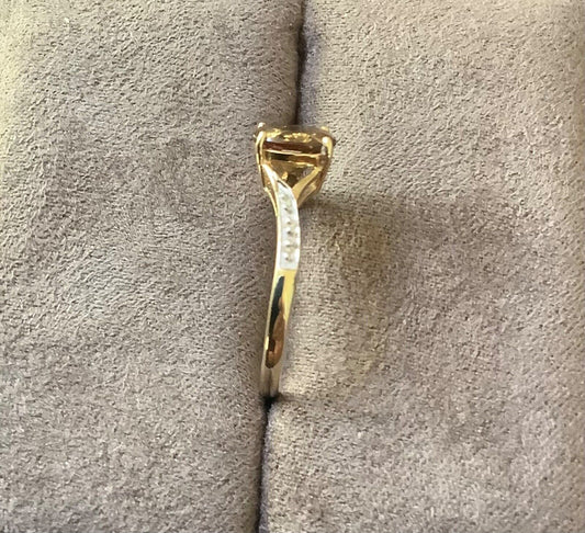 9ct Andalusite and diamond ring size N1/2 yellow gold hallmarked