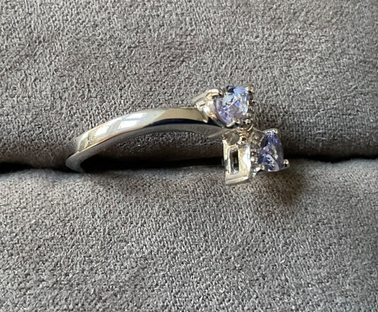 925 Tanzanite and Diamond pear cut bypass ring size Q sterling silver