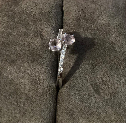 925 lilac stone & rose gold colour hearts sterling silver ring size O KN (Kirby Nez?)
