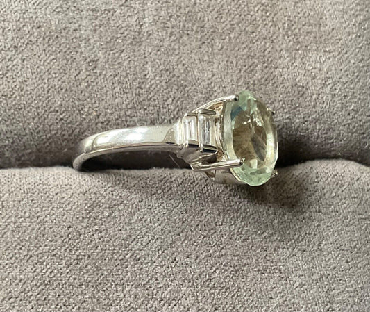 925 Green Amethyst & Zircon oval and baguette cut ring P1/2 sterling silver