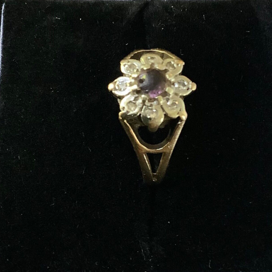 9ct amethyst and diamond vintage flower ring size K1/2 READ DESCRIPTION!