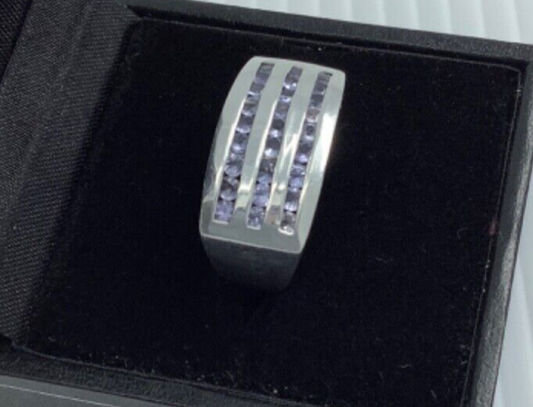 925 Tanzanite 3 row chunky sterling silver ring size N TGGC