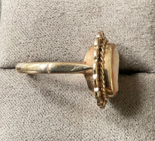 Vintage 9ct Cameo ring with scalloped edge size L 4.11g hallmarked Birmingham 1961-62 LPD makers mark