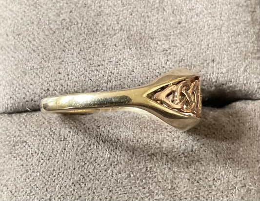 Clogau 9ct Queen Eleanor Vintage ring size K1/2 in yellow and rose gold 1998