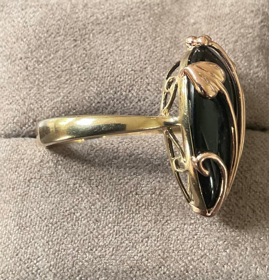 Clogau Vintage 9ct ‘Nightfall’ Black Onyx ring size O yellow and rose gold 4.9g