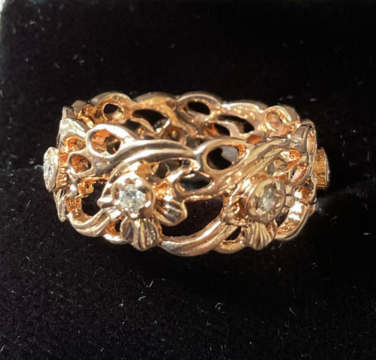 Vintage 14ct Stuart Devlin Welsh Gold Diamond Daffodil eternity ring size P from Franklin Mint