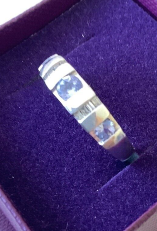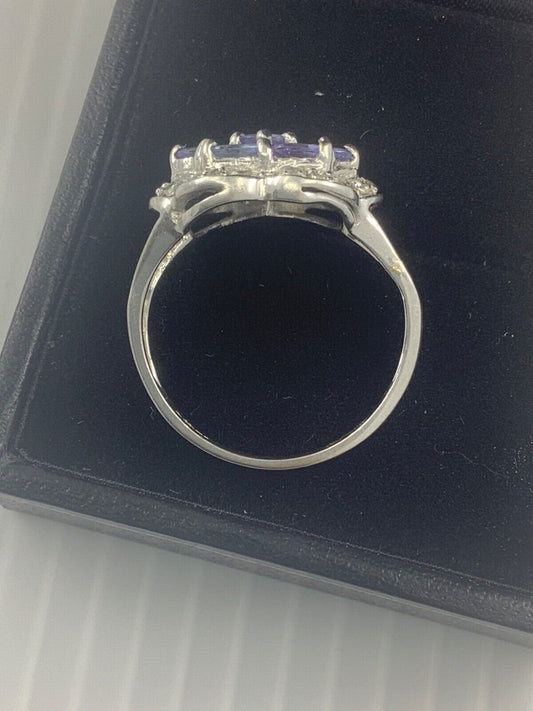 9ct Tanzanite and baguette diamond white gold band ring size L QVC