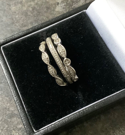 9ct white gold 0.15ct Diamond 3 stacking rings size O1/2 - P RRP £699