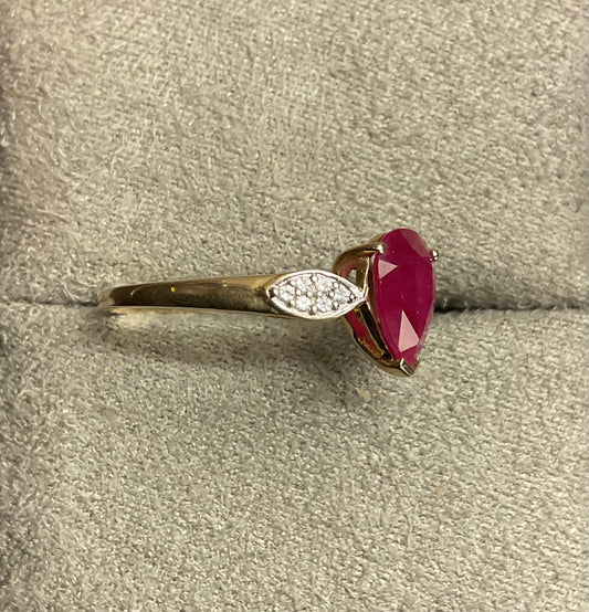 10K gold pear cut ruby and white zircon ring size P1/2 hallmarked TGGC