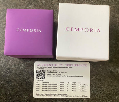 1/4ct Golden Ivory Diamonds 9ct ring size R1/2 yellow gold with certificate