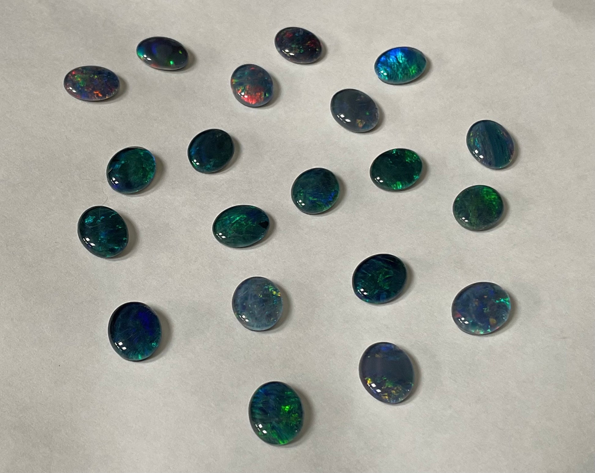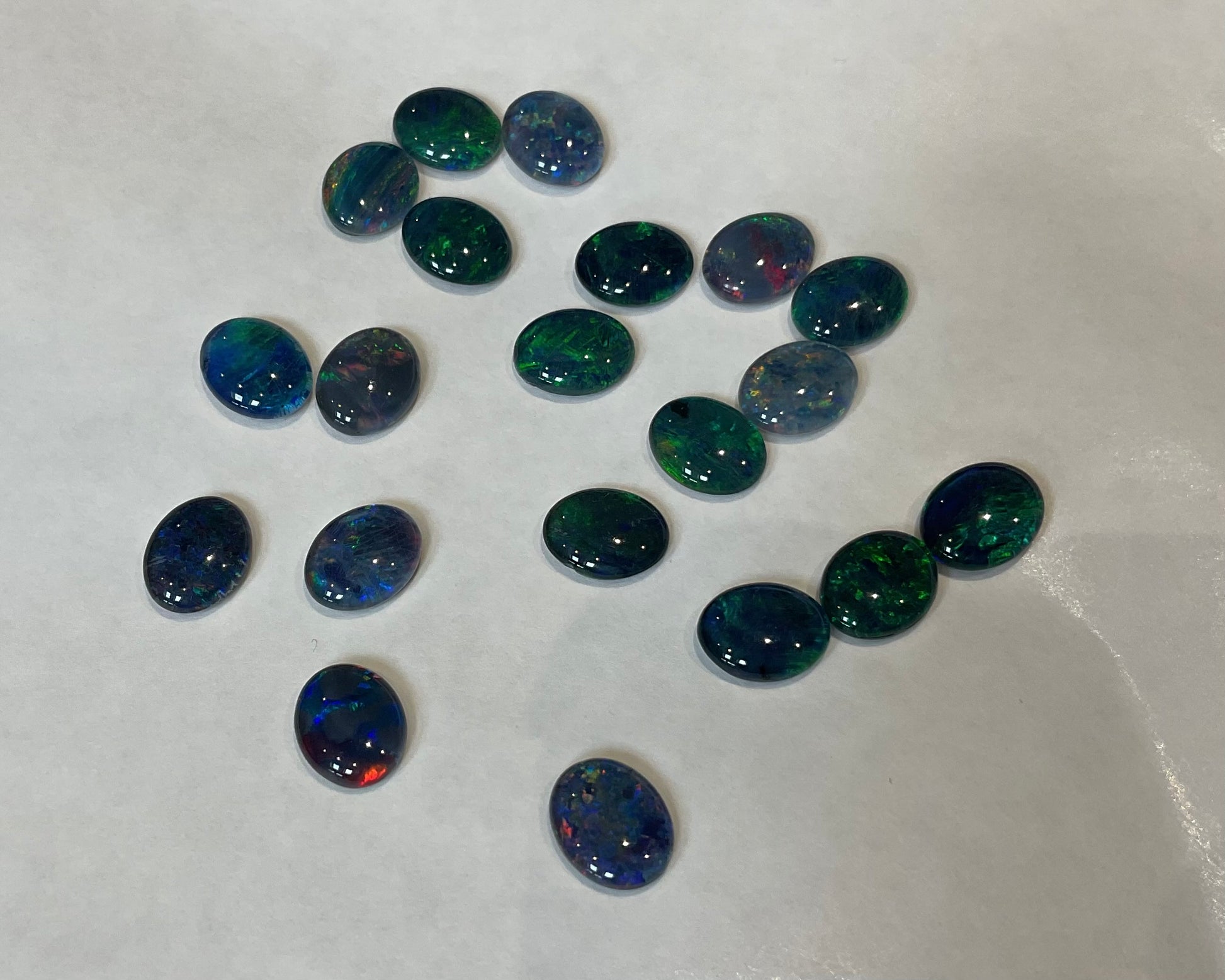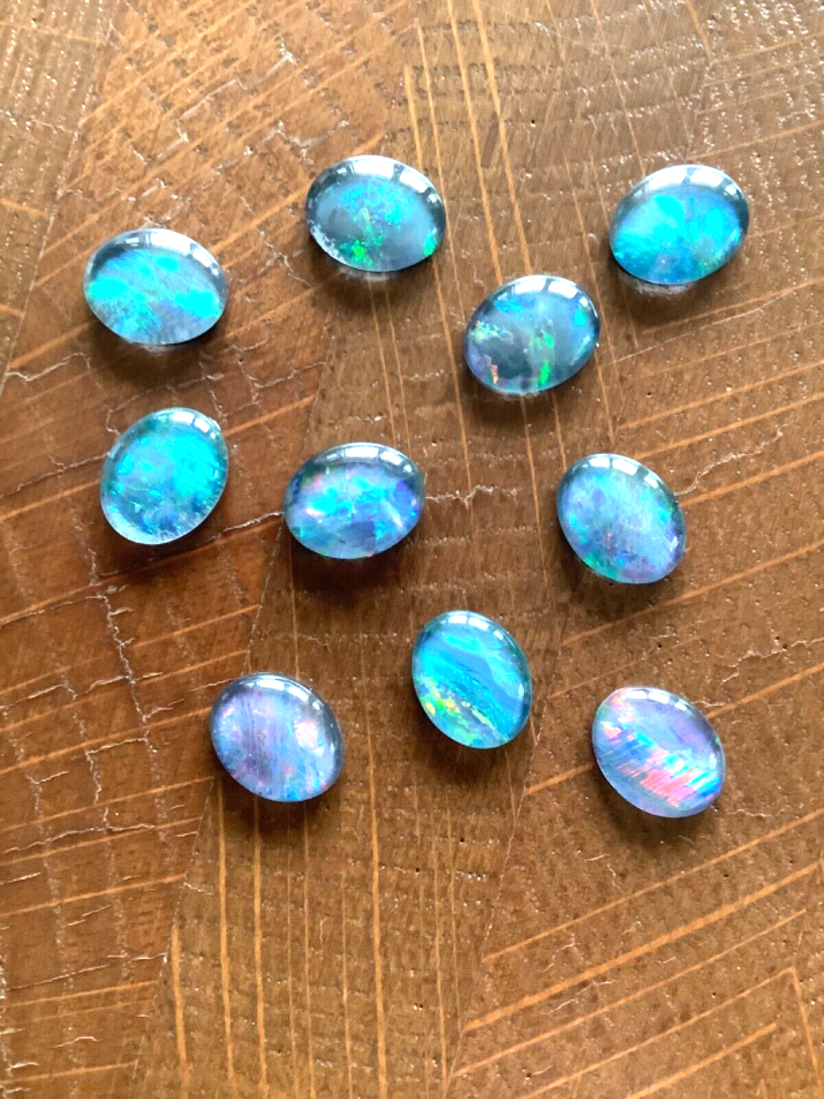 20 x triplet opal cabochons approximately 10x7mm flashes varied colours including reds greens yellows blues