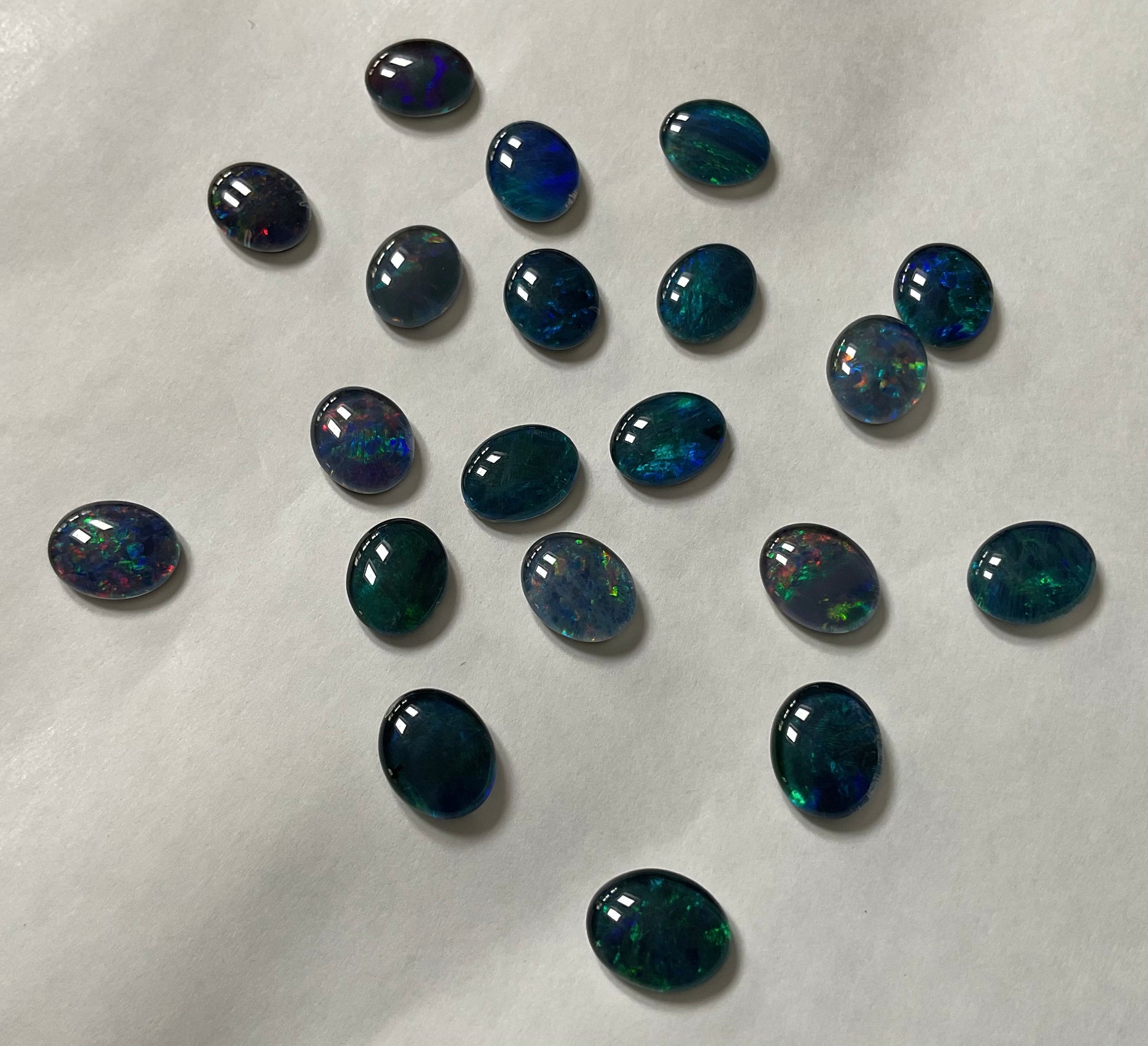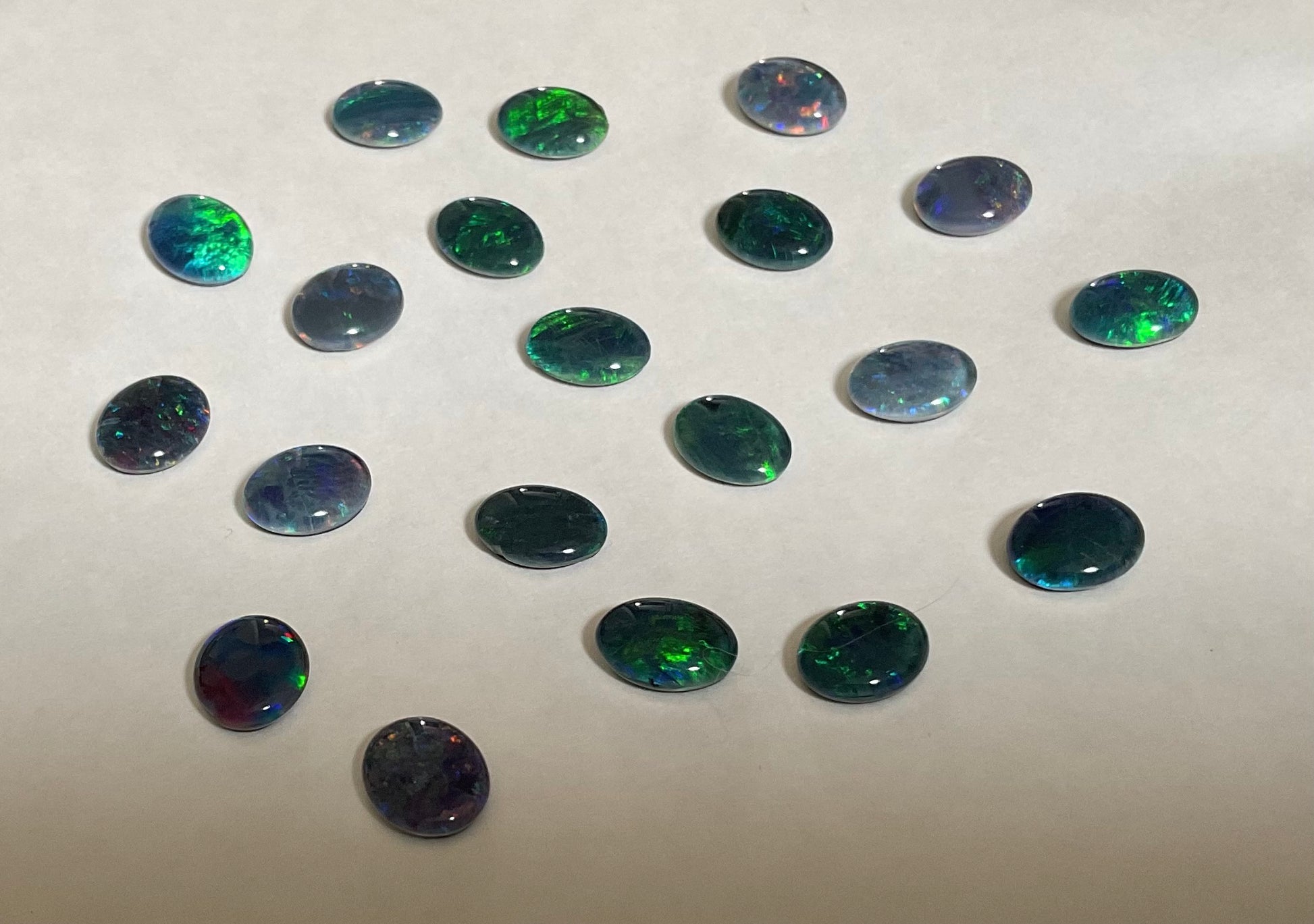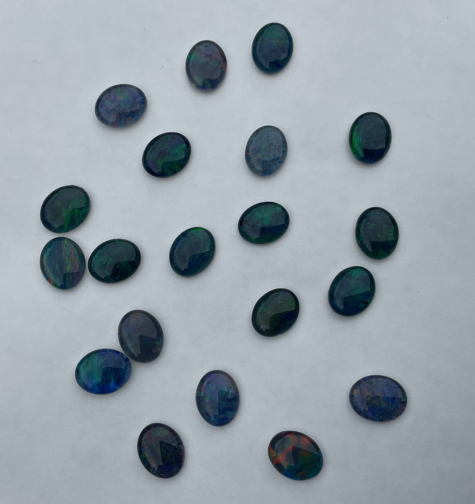 20 x triplet opal cabochons approximately 10x7mm flashes varied colours including reds greens yellows blues