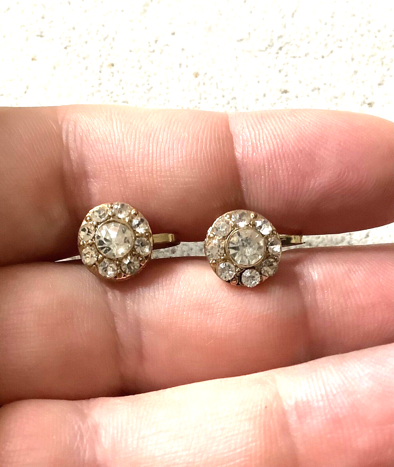 2 x vintage silver and gold tone diamanté stud clip on earrings