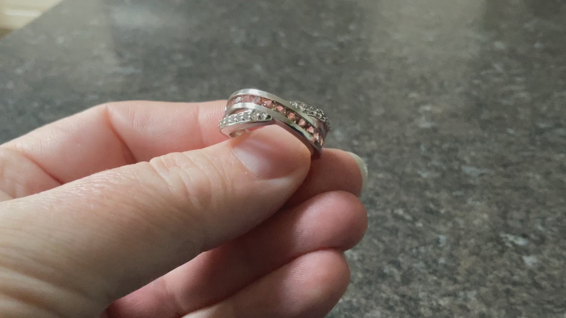 925 Andalusite and zircon channel set cross over ring size N1/2 sterling silver