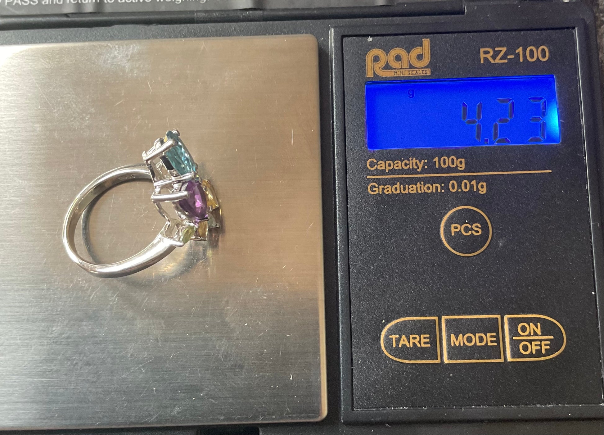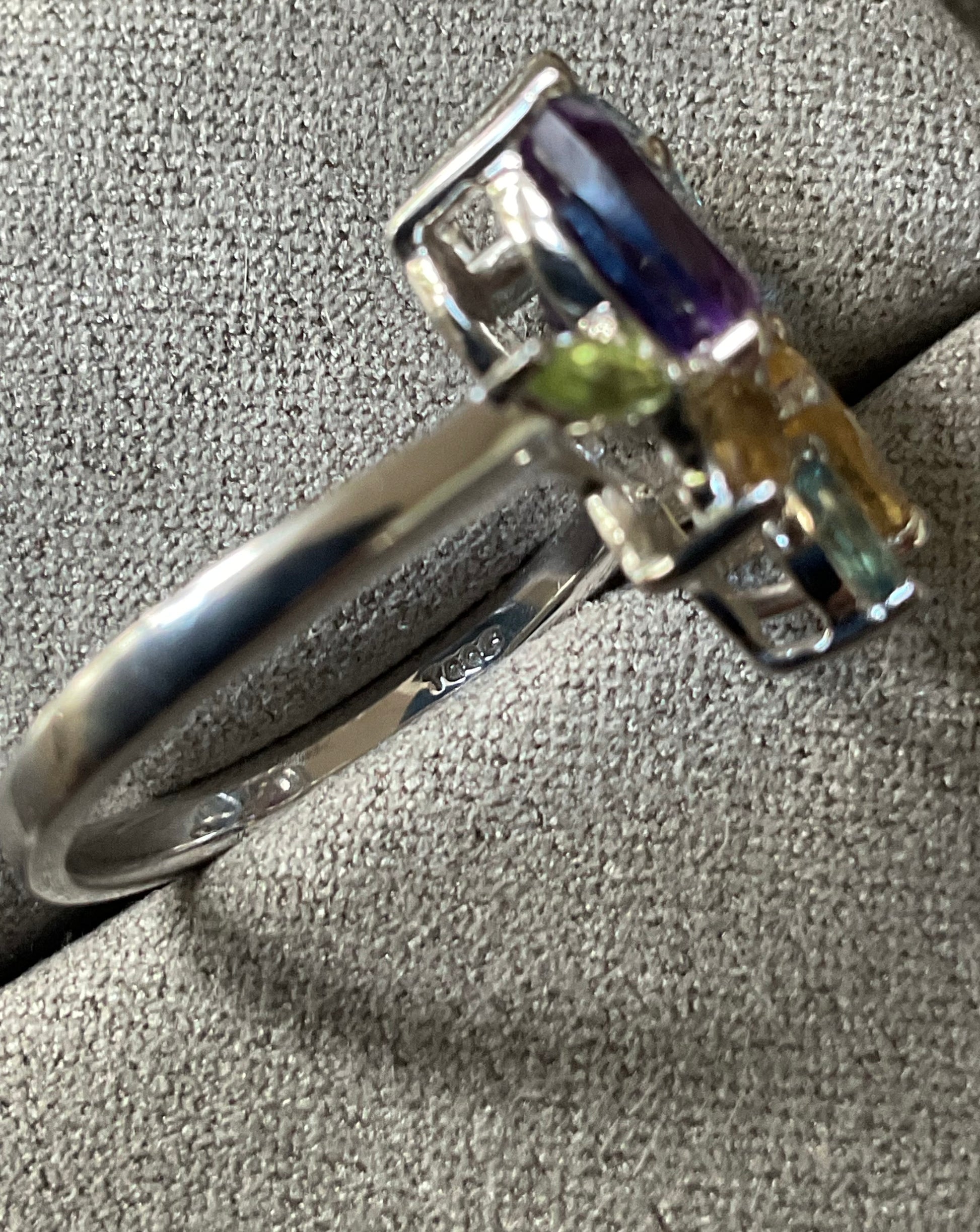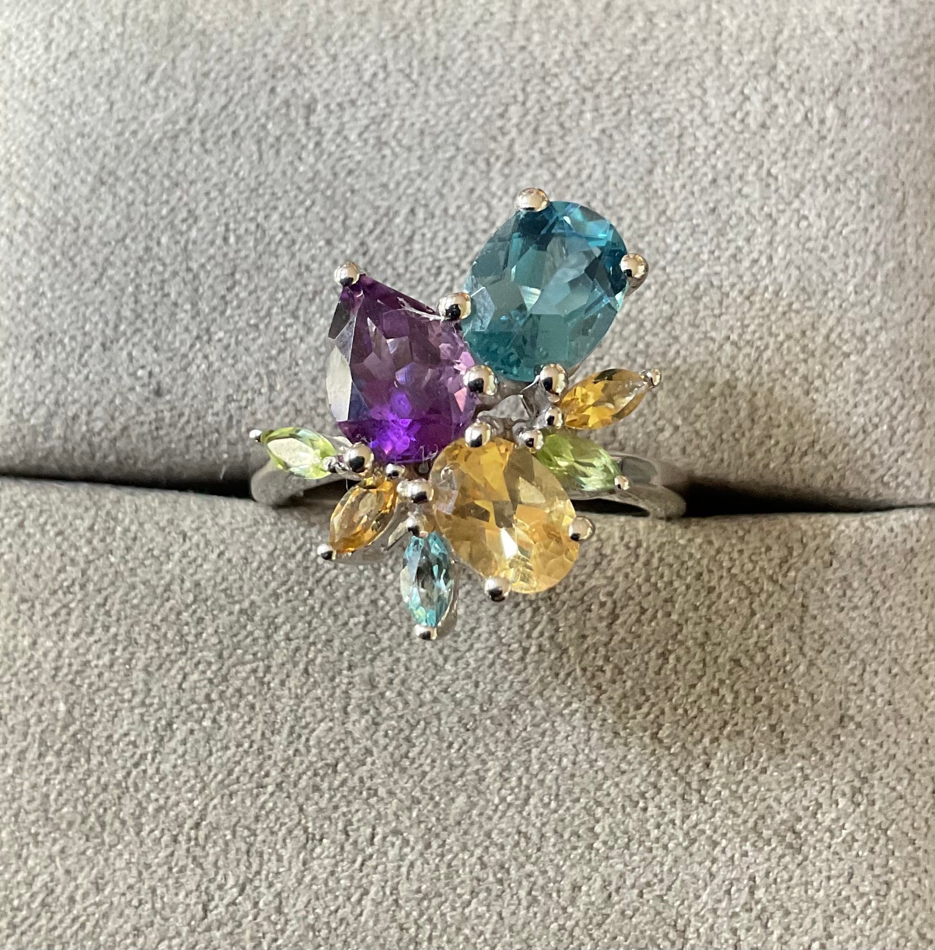 925 Multi gemstone Topaz Amethyst Citrine & Peridot oval pear & marquise cut sterling silver ring size L1/2 TGGC