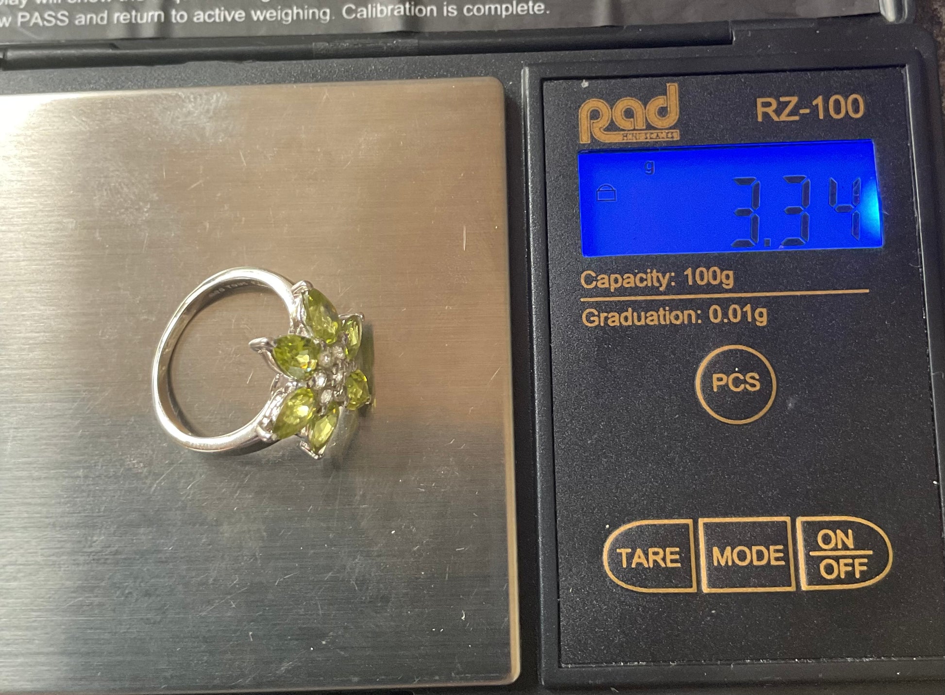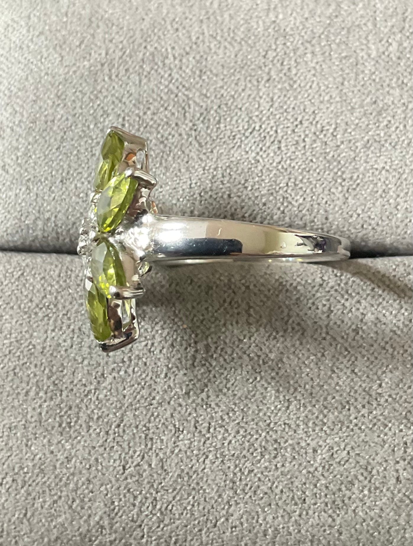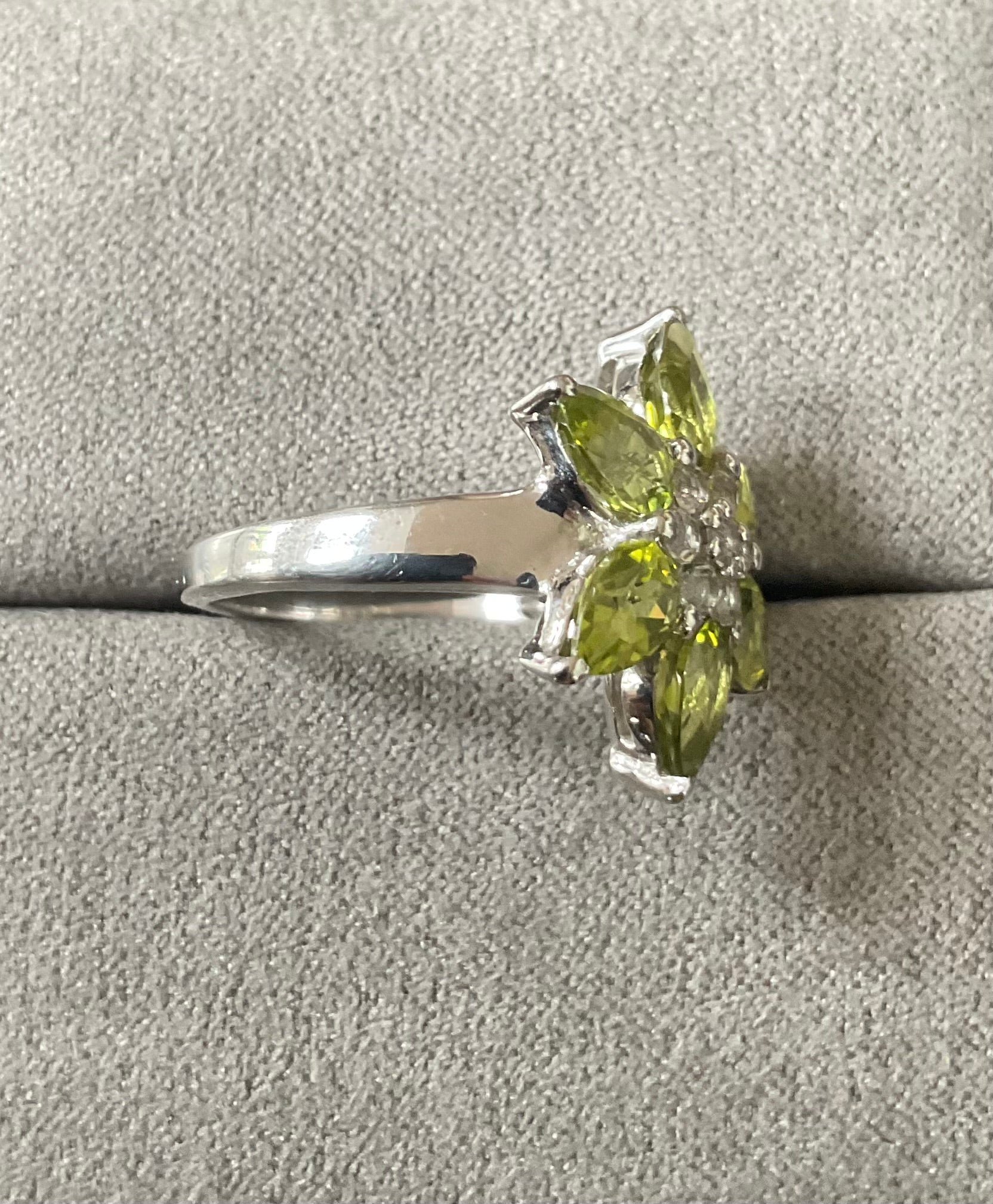 925 Peridot and Zircon Flower sterling silver ring size L TGGC