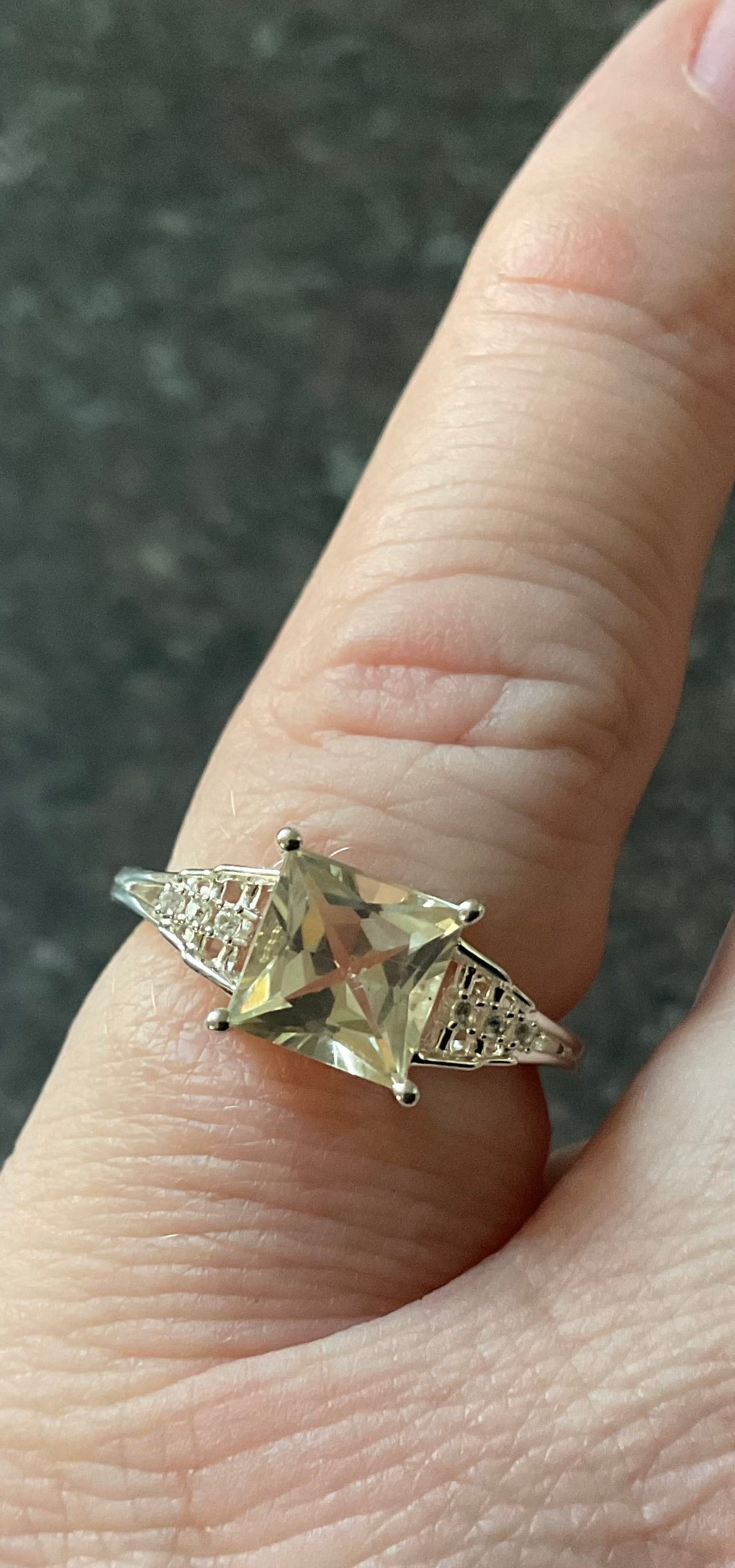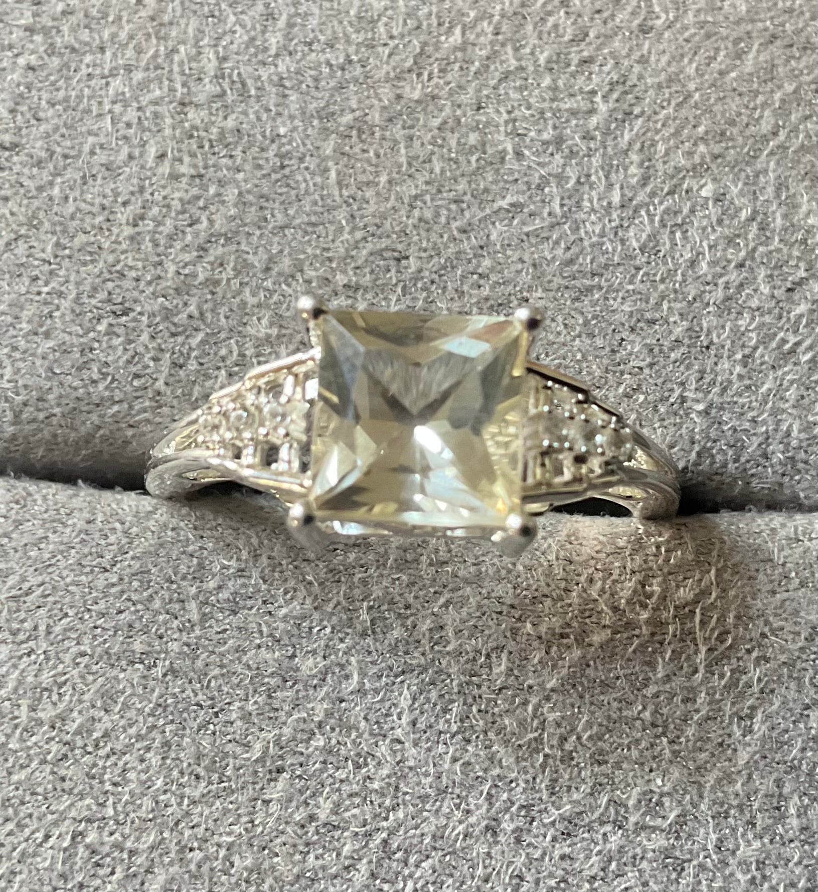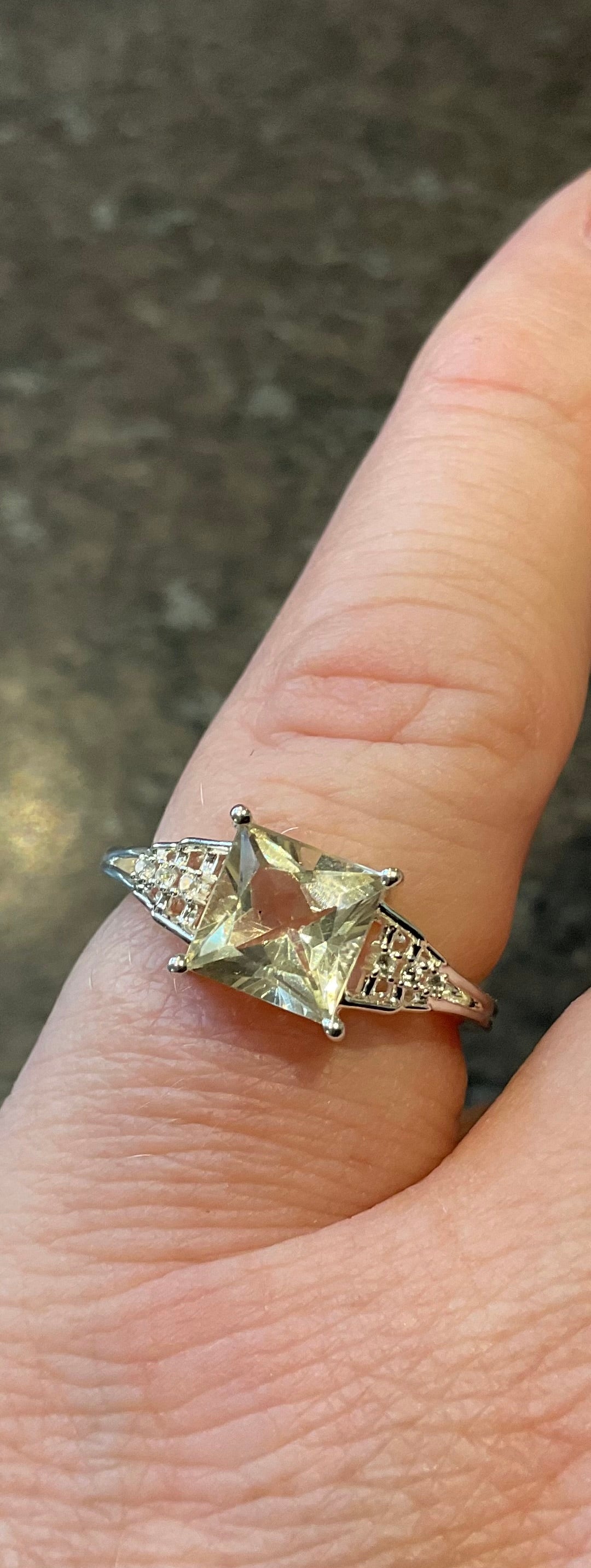 925 square cut Serenite and Zircon ring size N1/2 sterling silver
