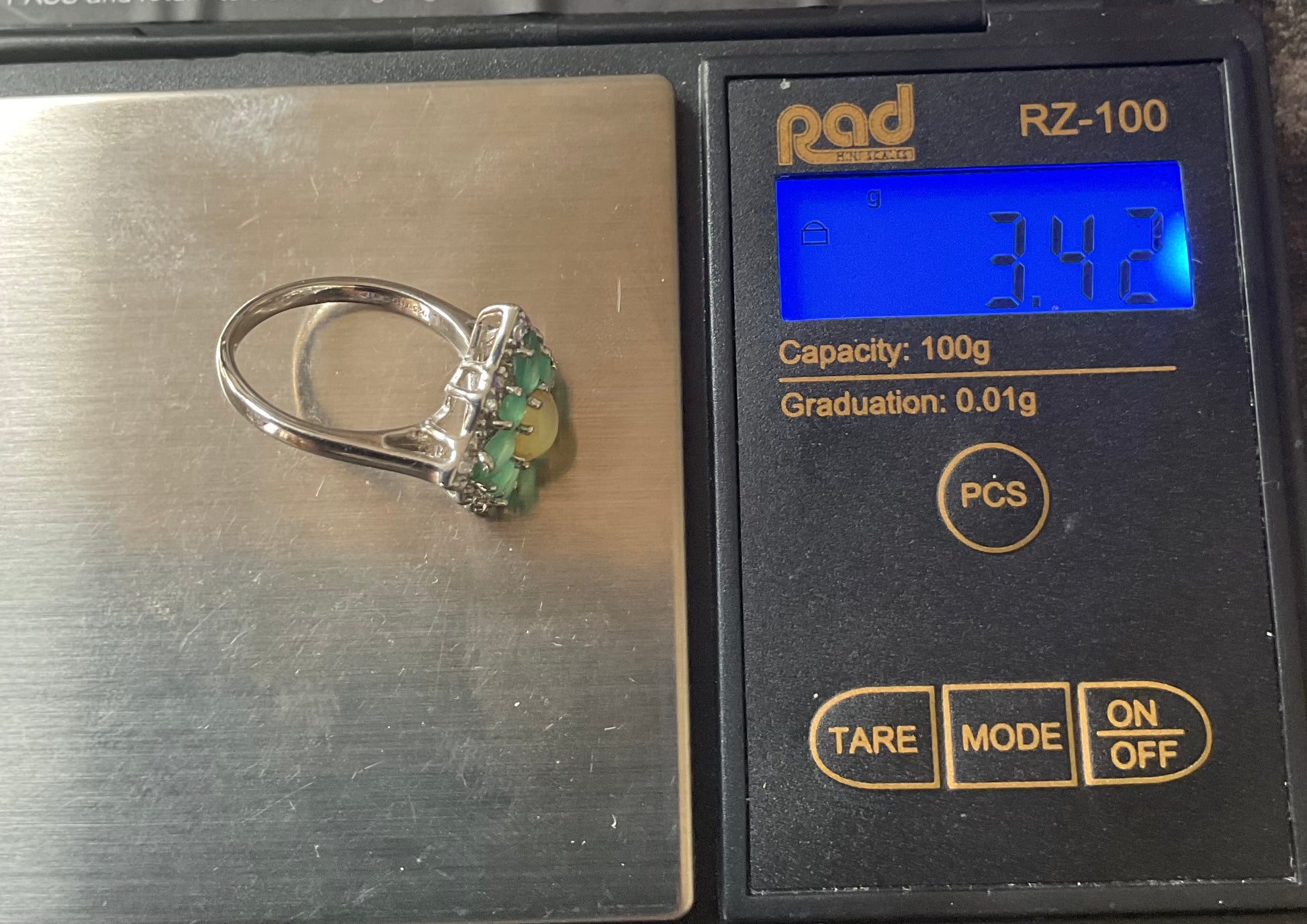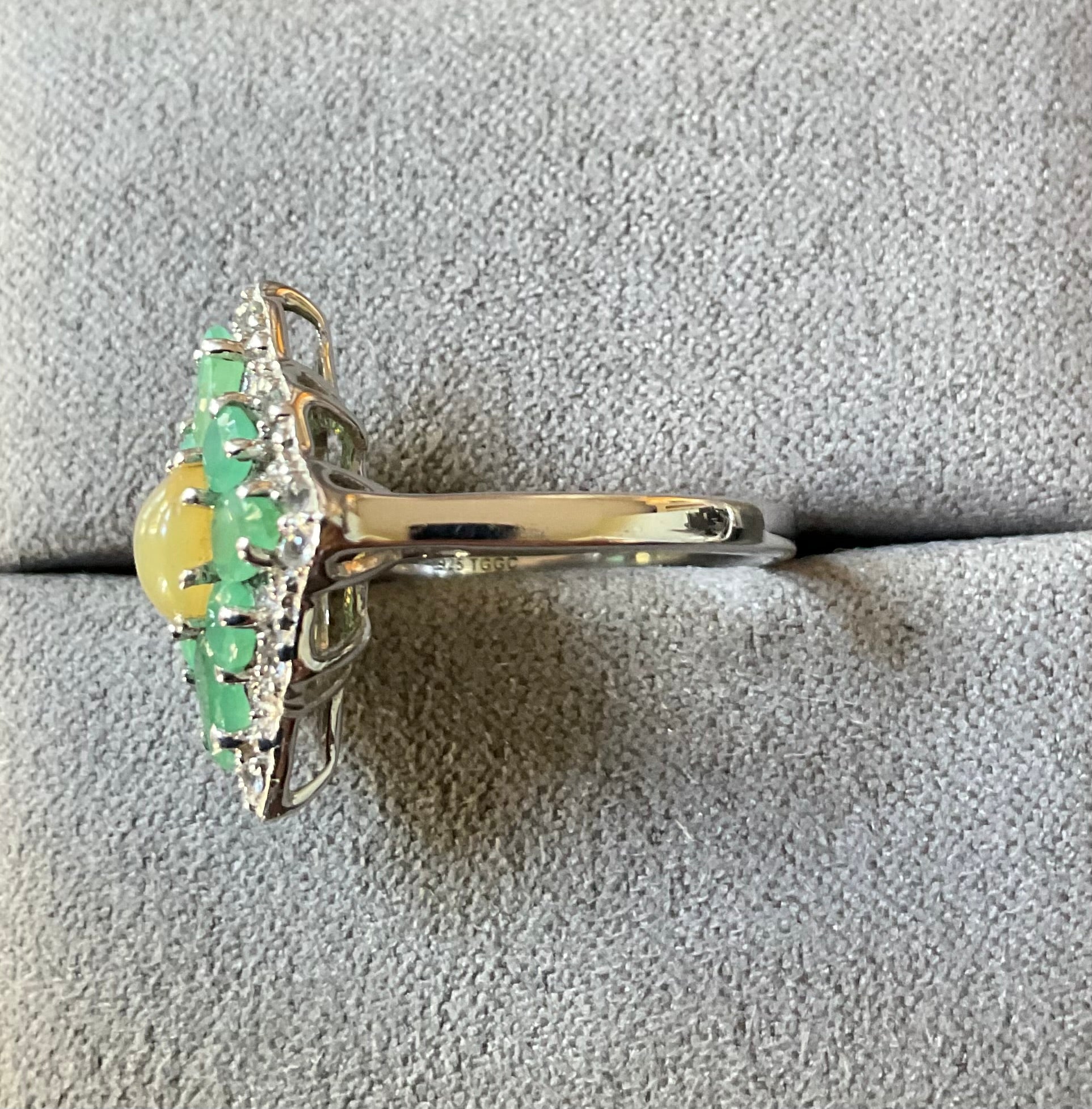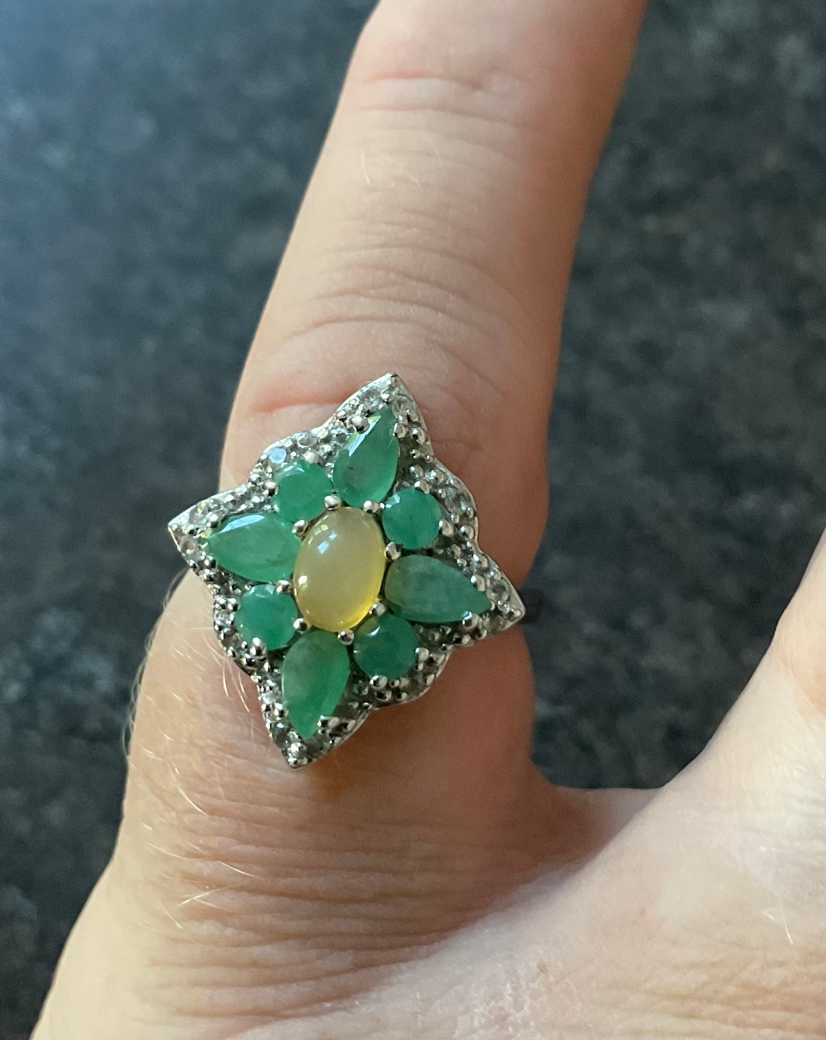 925 Welo Opal Emerald & Zircon cluster halo sterling silver ring size L TGGC