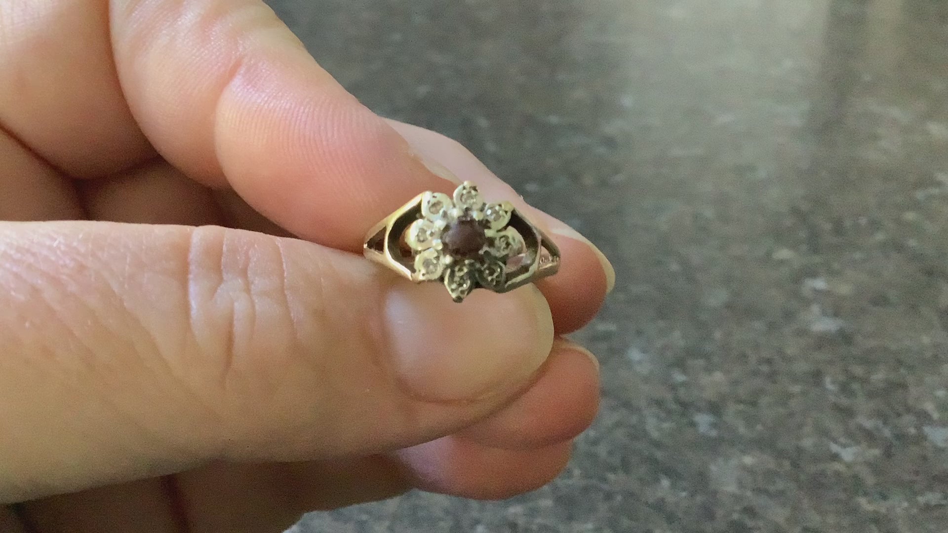 9ct amethyst and diamond vintage flower ring size K1/2 READ DESCRIPTION!