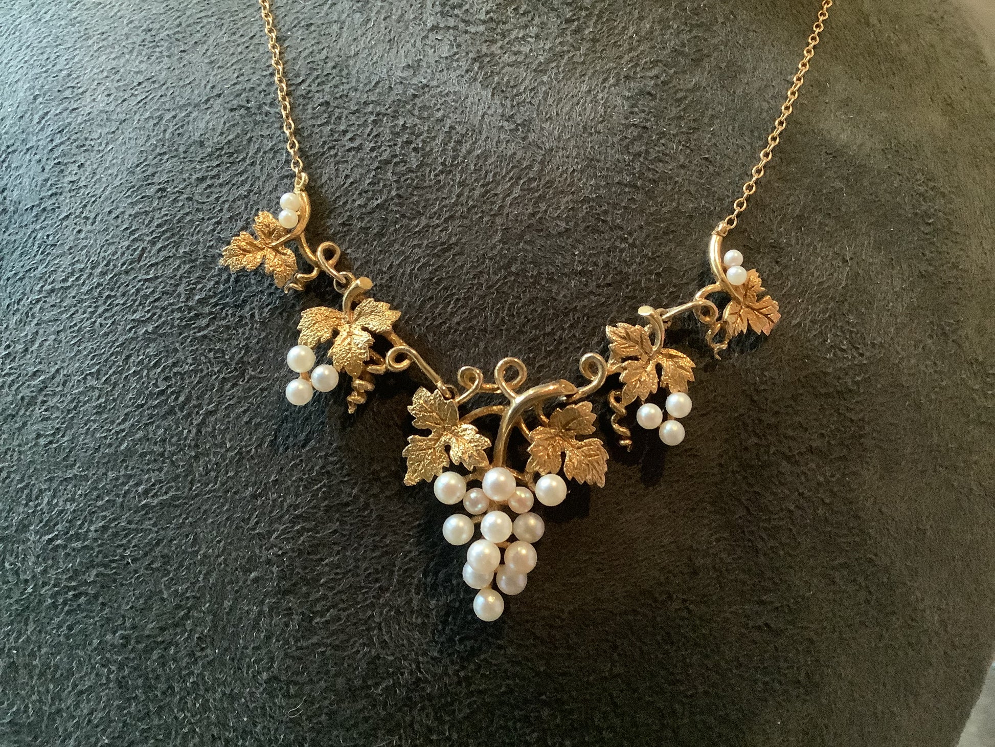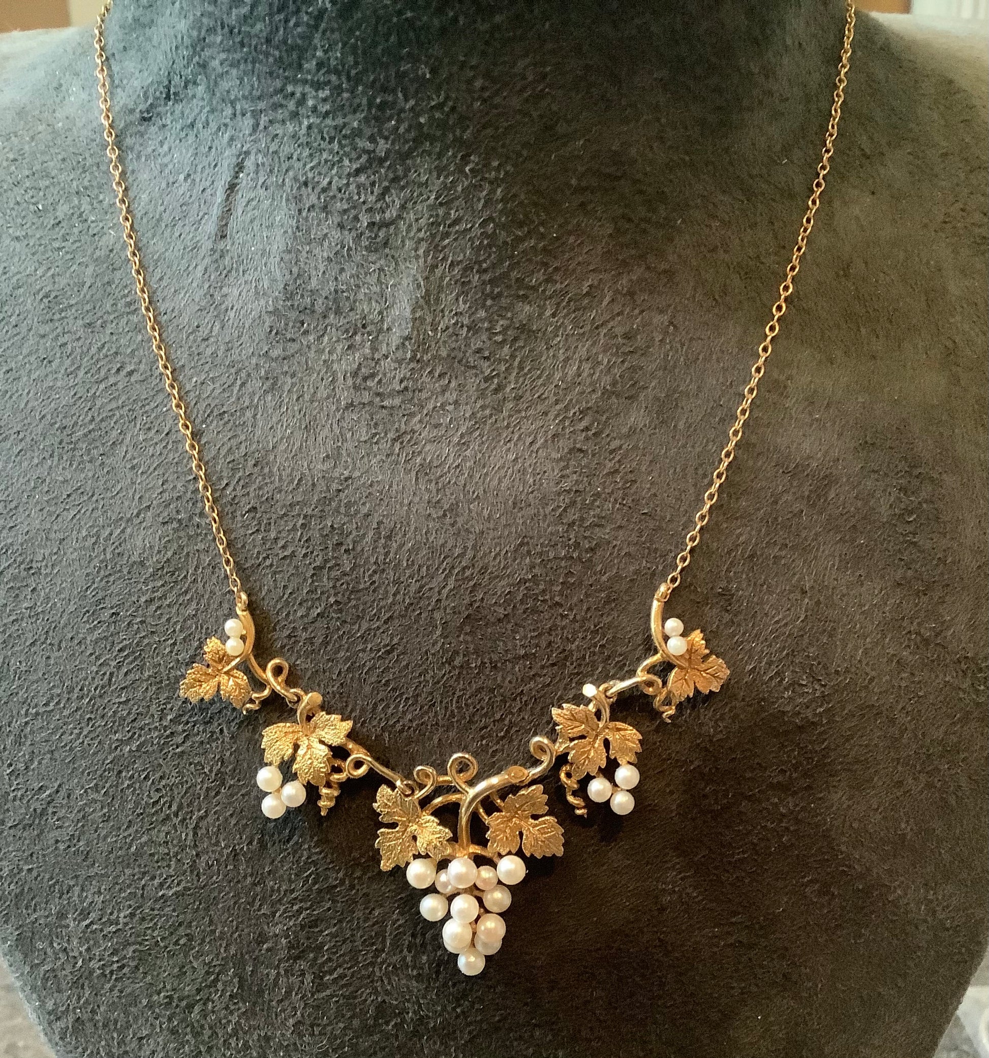9ct cultured pearl grapevine necklace 16.5" yellow gold vintage ? antique?