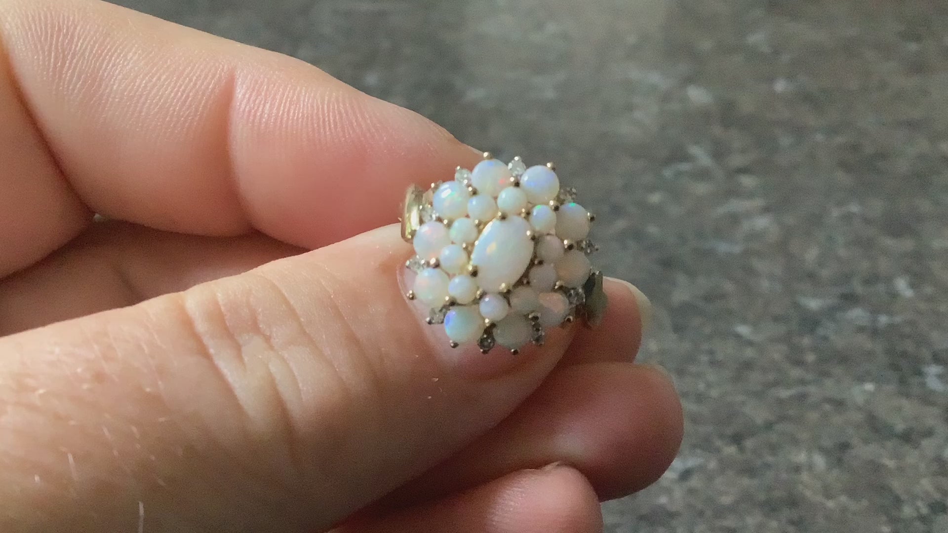 Vintage 9ct large Opal and Diamond cluster ring size M yellow gold QVC Birmingham hallmark 2004